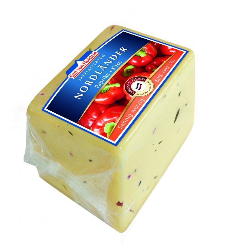 Unser Sortiment umfasst eine Vielzahl von naturgereiften Käsespezialitäten, vom Tilsiter über den Gewölbekäse und Nordseekäse bis hin zum Schlemmerkäse in verschiedenen Fettgehaltsstufen und Reifegraden, mit und ohne Gewürz, wie zum Beispiel Kümmel, Bärlauch oder Paprika.